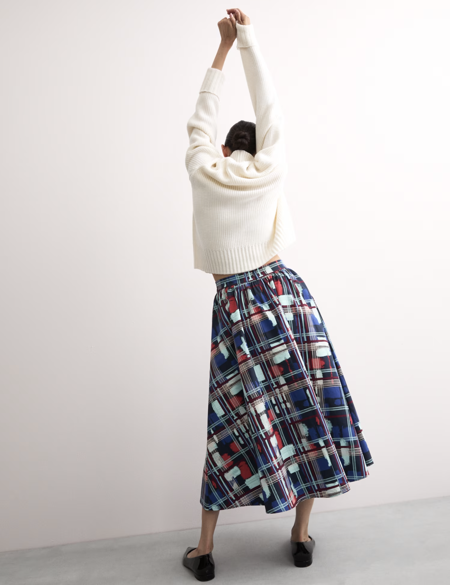 A selection of skirts and trousers designed in woven fabrications from drapey, fluid fabrics to more structured cottons and denim.
