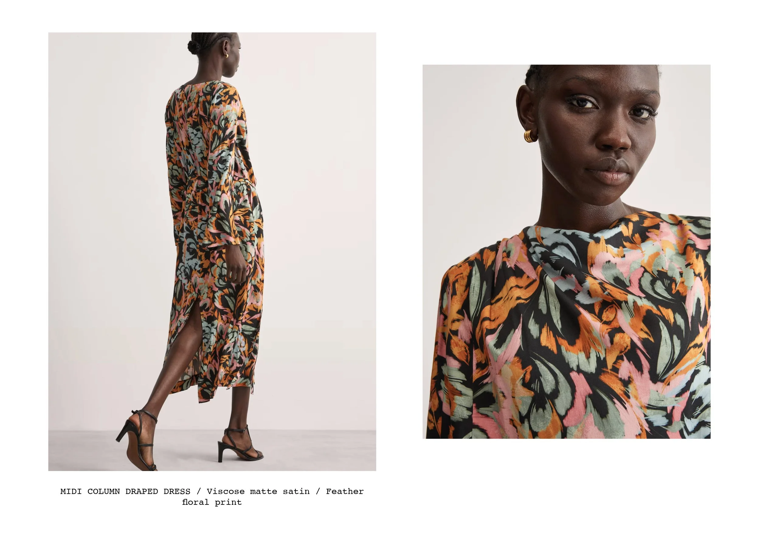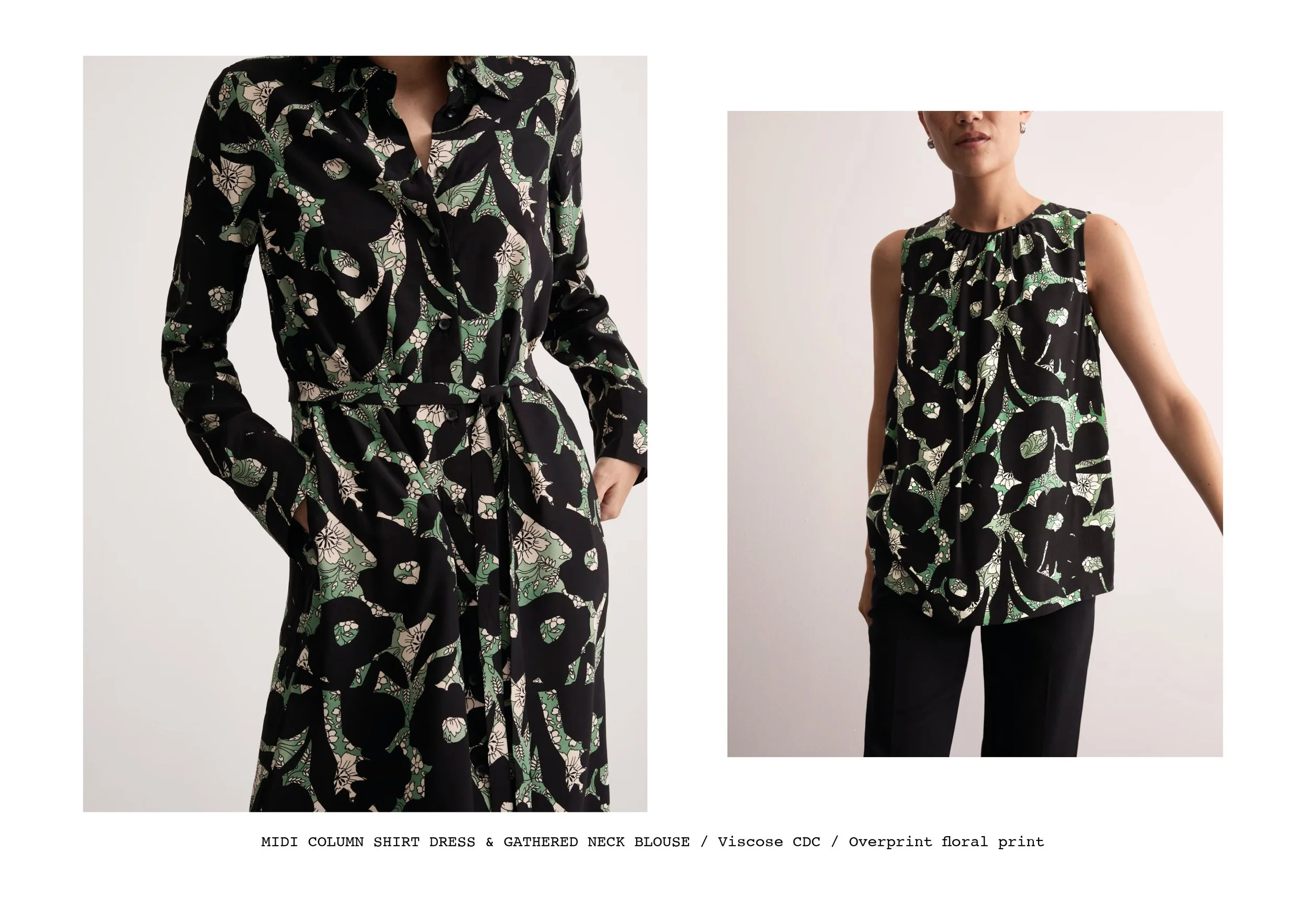 First look at Autumn for August ‘24. The collection brings interest in subtleties alongside vibrant graphic prints. Fluid, feminine details juxtapose against masculine statement collars and pocket detailing. Soft greys and mint green compliments ochre, dull pinks and classic black and navy.