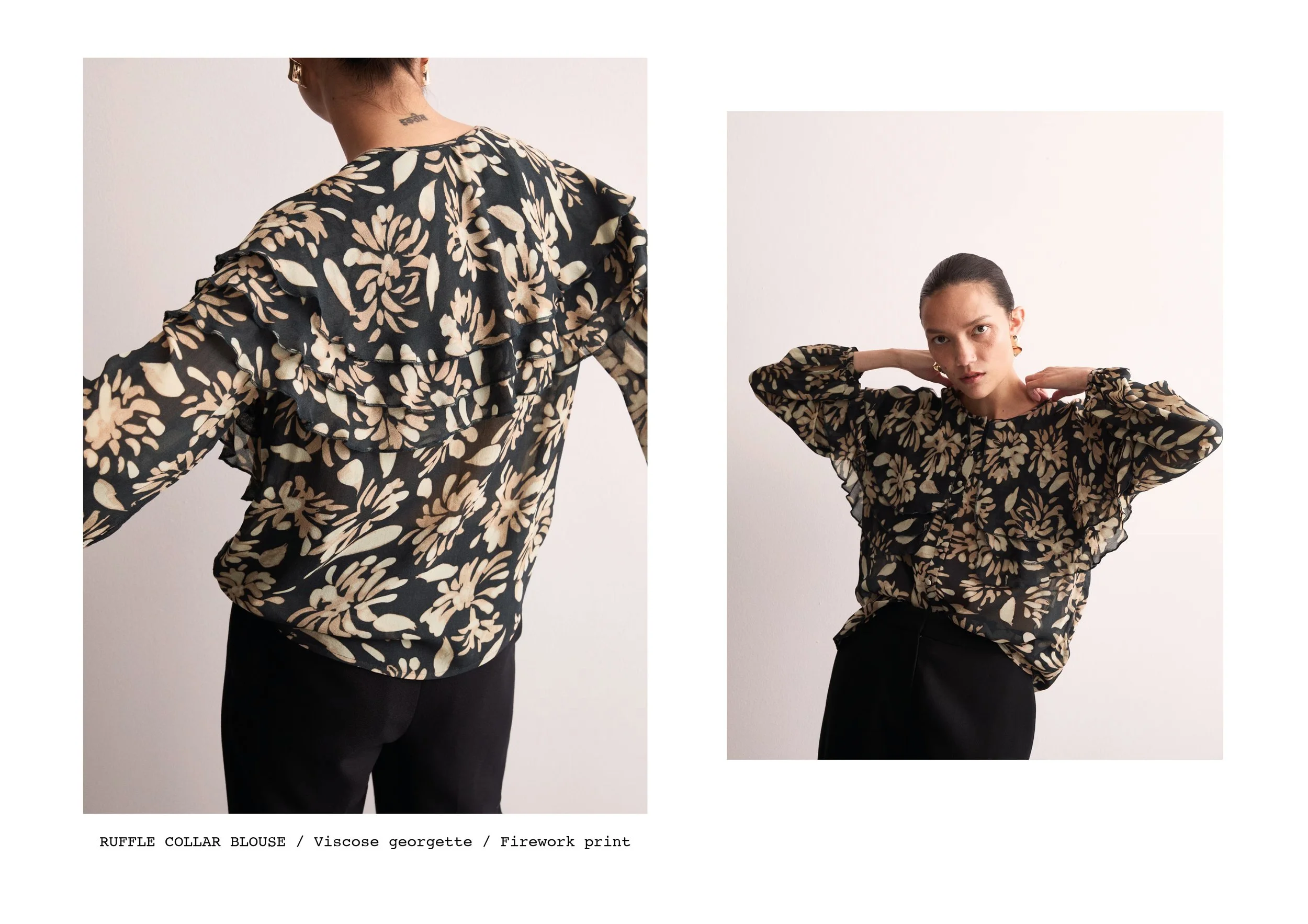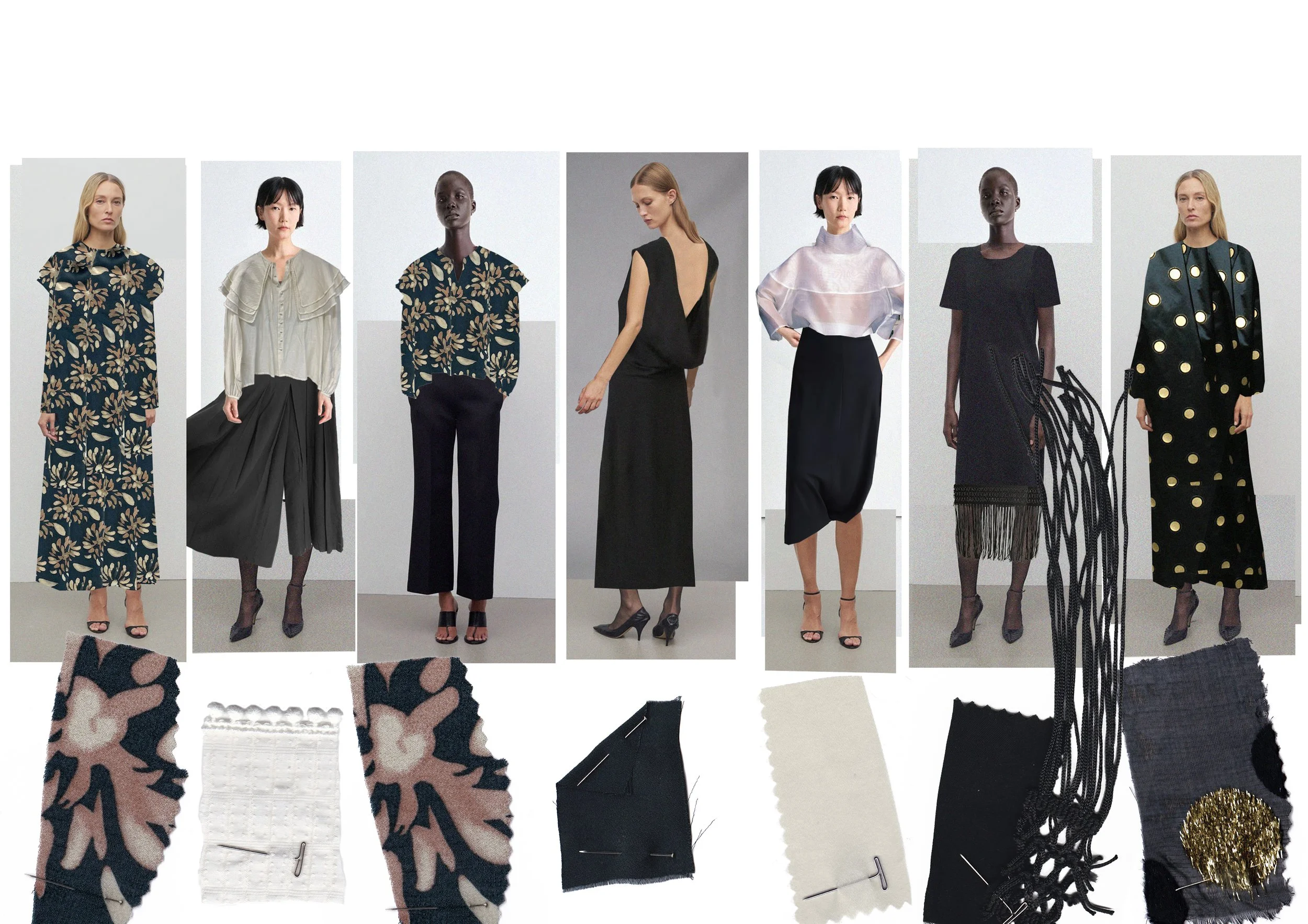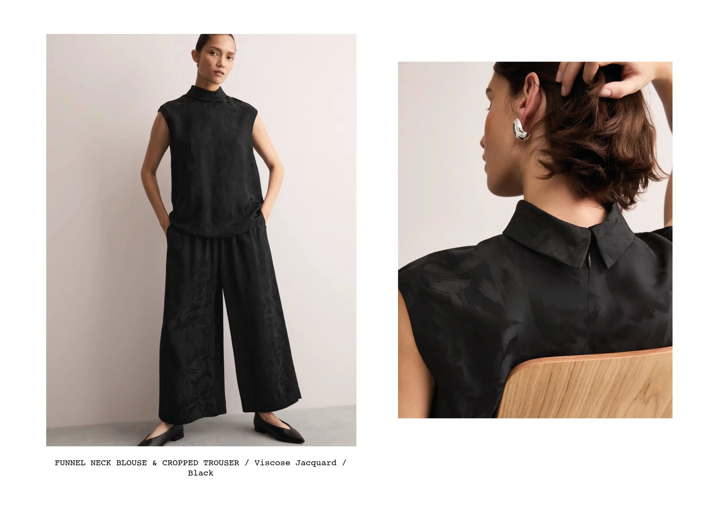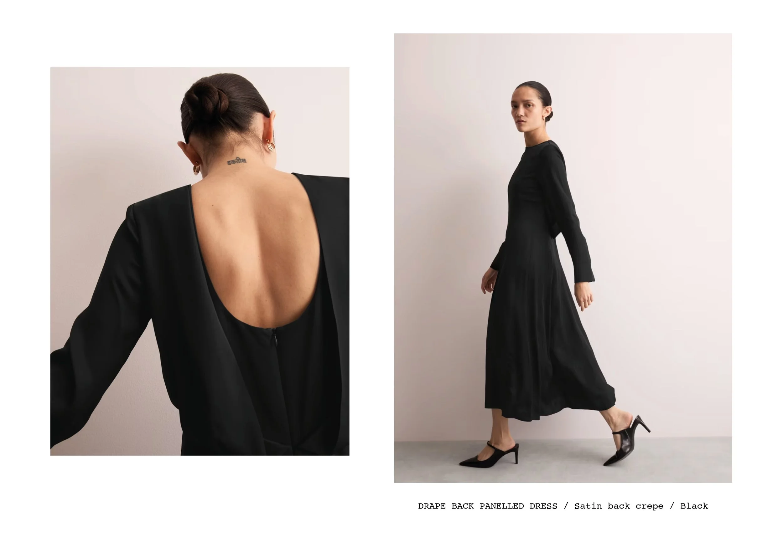 True event collection for November ‘24. This collection offers impactful evening wear with an ease of wear. Distinct gold, sheer fabrications and refined details compliment each other. The elegant firework print sits alongside gold, champagne, ivory and inky darks - champagne and fireworks in an inky sky.