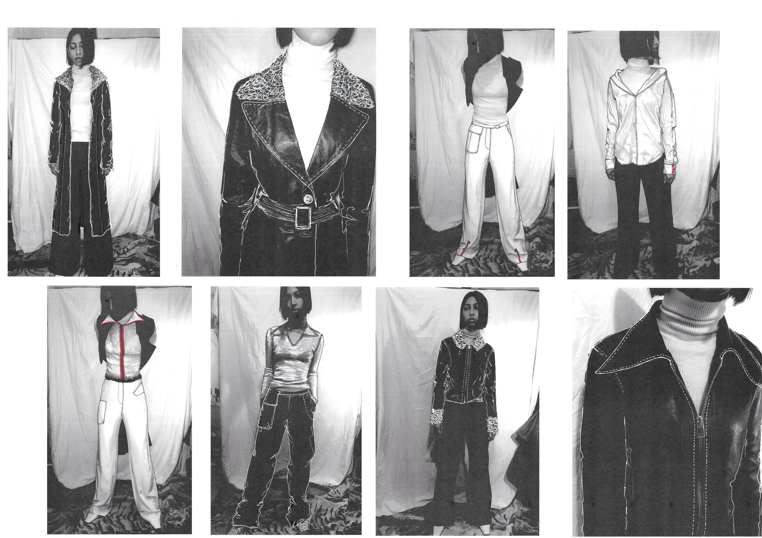 Brief personal project, consisting of styling with vintage and modern pieces, drawing onto images and developing textures, details and silhouettes.